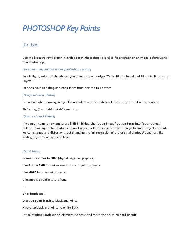Photoshop Key Points